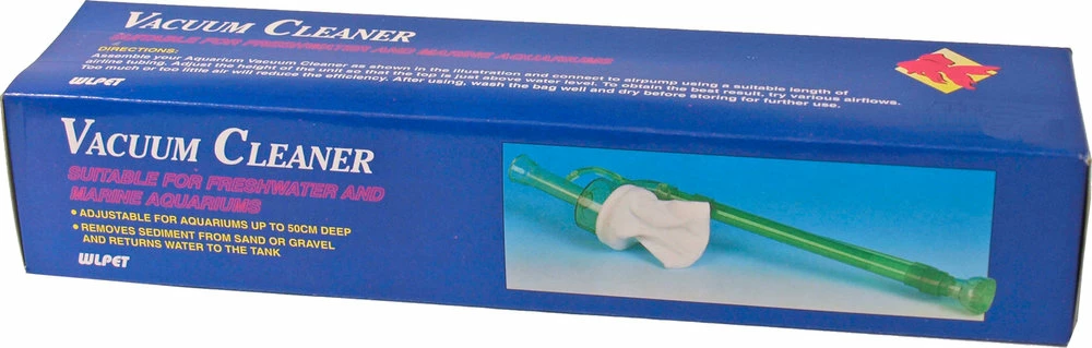 De stofzuiger moet aangesloten worden op een luchtpomp. Luchtpomp blaast lucht door de dunne buis naar mondstuk onderaan de stofzuiger. De lucht stijgt weer op en er ontstaat een water circulatie. Deze circulatie neemt vuil van de bodem mee, vuil komt tercht in de stofzuigerzak. Stofzuigerzak is zo gemaakt dat vuil achterblijft en schone water weer terug stroomt in het aquarium. Zakje kunt u onder de kraan uitspoelen.