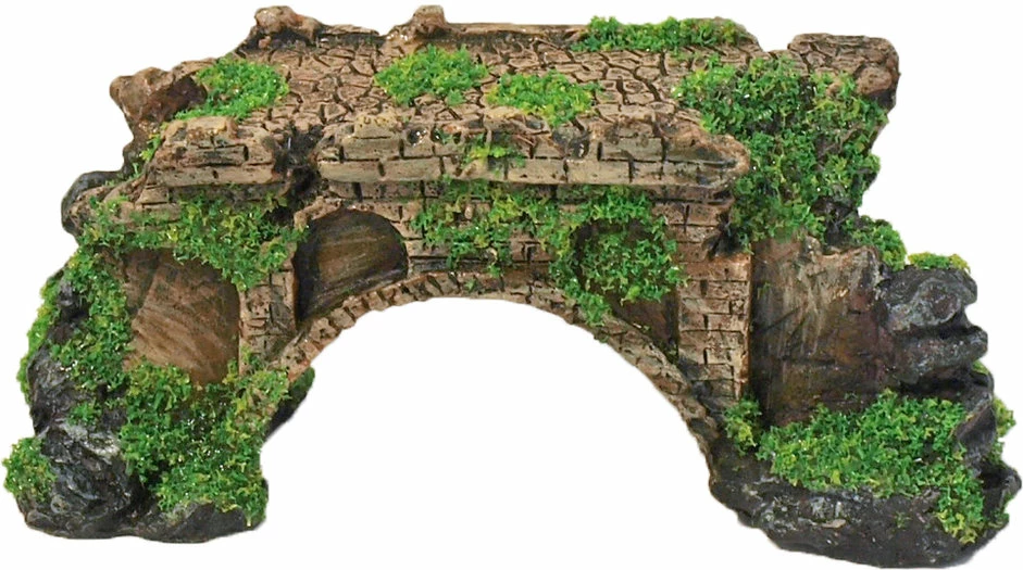 Aquarium beeldje begroeit met imitatie gras. Beeldje om aquarium te verfraaien.