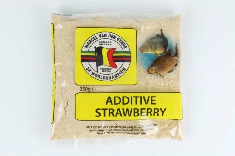 Een sterke additief met een aantrekkelijke zoete aardbei smaak. Dit additief kan door iedere lokvoer gemengd worden en versterkt geur en smaak van het lokvoer. Aardbei poeder is ook geschikt voor hookbaits als casters, maden, pellets en mais. Geschikt voor alle vissoorten maar met name karper en brasem wordt erg goed op gevangen.