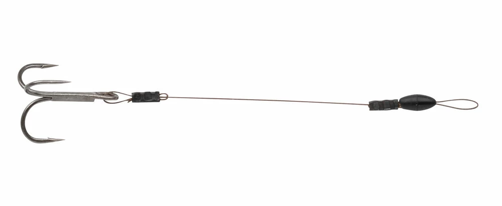 Montage is eenvoudig, doe lusje om oog van de loodkop schuif de rubber stopper omhoog en duw de dreg in de shad.