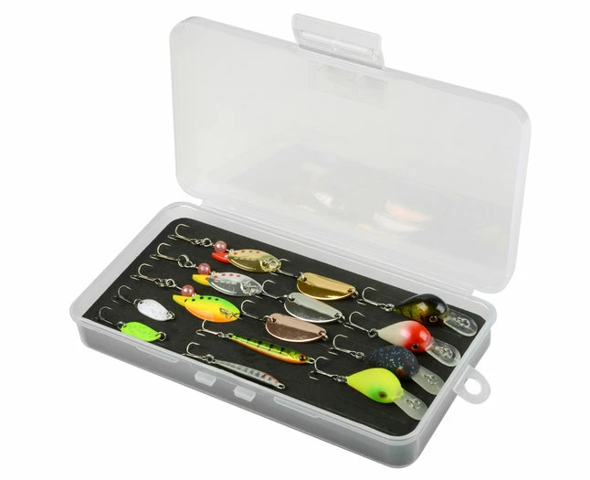 Tacklebox met eva schuim bodem, de bobem is voorzien van 10 lange gleuven om de haak of dreg in te drukken. Handige opbergdoos voor spinners, kleine pluggen en ander kunstaas.