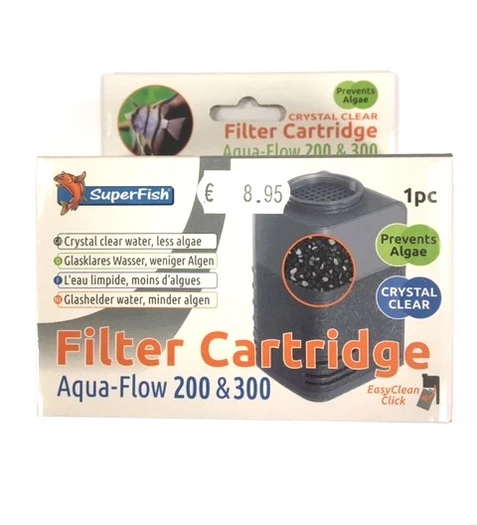 Vervangingsfilter voor de Aquaflow 200 en 300 binnenfilter. De Crystal Clear filtercassetes filtert nog iets beter dan de standaard filter cartridge van superfish.