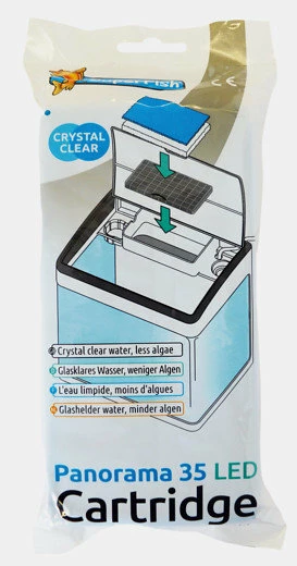 Complete set van een 2-laags filtermat, fijn en grof, en een crystal clear cartridge van de panorama aquarium. De cardrige bevat crystal clear, een combinatie van kool en zeolith .