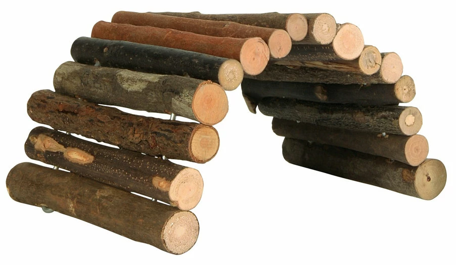 Brug gemaakt van wilgentakken, verbonden door ijzerdraad. U kunt de wilgenbrug in ieder vorm buigen die u wilt o.a. koker, brug en klimwand. Wilgentakken zijn eetbaar en zorgen voor slijten van de tanden.